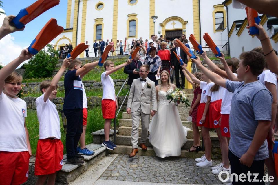 Den gemeinsamen Nachnamen tragen Christoph Müllhofer und Claudia Müllhofer, geborene Herrmann, schon länger. Im September 2020 heirateten sie standesamtlich. Doch bis zur kirchlichen Trauung mussten sich der 31-jährige IT-Security-Spezialist und die 30-jährige Wirtschaftsfachwirtin wegen Corona gedulden. Doch nun schlossen sie in der Kreuzbergkirche auf dem Rosenquarzfelsen endlich vor Gott den Bund fürs Leben. Pfarrer Stefan Weig traute das Paar. Die Ehehleute kennen sich als gebürtige Pleysteiner natürlich schon immer. Nach vielen gemeinsamen Jahren in der Pleysteiner Prinzengarde sind Christian und Claudia Müllhofer seit dem Valentinstag 2013 ein Paar.