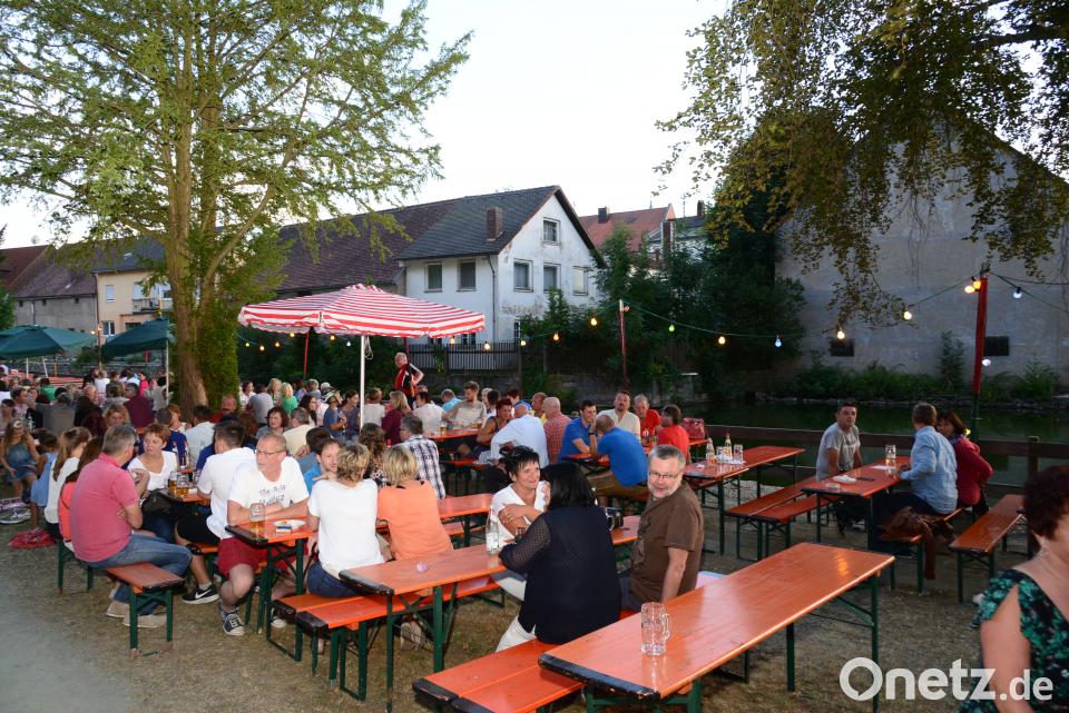 (bey) Nachmittags waren die Besucher zunächst noch recht überschaubar, am Abend dann füllten sich die Plätze entlang des Stadtweihers unterm Kreuzberg. Die „Feiermelder“ spielten den ganzen Nachmittag über bestens zur Unterhaltung auf. Die Mitglieder der Siedlergemeinschaft zeigten sich als beste Gastgeber und erfüllten die kulinarischen Wünsche der Besucher und sorgten auch dafür, dass niemand Durst leiden musste.