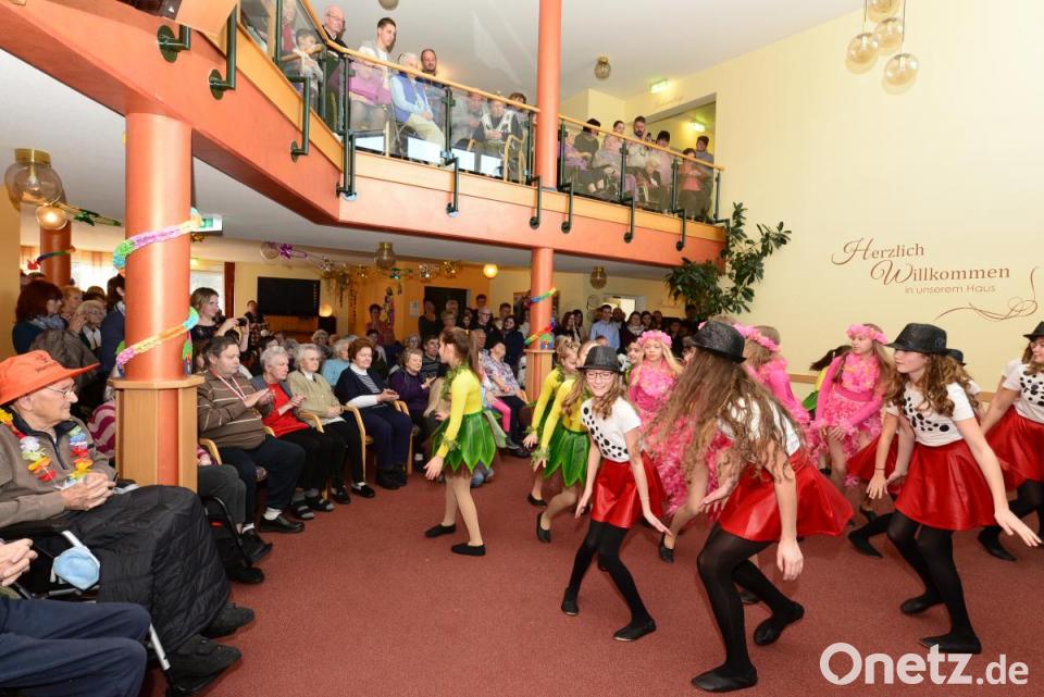 Das Pleysteiner Faschingsprinzenpaar René I. und Alexandra II. kamen mit Hofstaat sowie den Garden zu Besuch. Rund 50 Mitwirkende der Katholischen Jugend und der Pleysteiner Prinzengarde sorgten in ihren bunten Kostümen für ein farbenprächtiges Bild. Die Bewohner der Einrichtung saßen dicht gedrängt an der Tanzfläche, dahinter standen viele Gäste, deren Kinder zu den Mitwirkenden zählten, die aber auch die Aufführungen der Jugend einfach sehen und sich daran begeistern wollten. Dafür bot das komplette Programm der Garde, einschließlich der Mitternachtsshow die beste Gelegenheit. Stürmischer Beifall dankte den engagierten und hoch motivierten Tänzerinnen und Tänzern für ihre gekonnten Darbietungen.