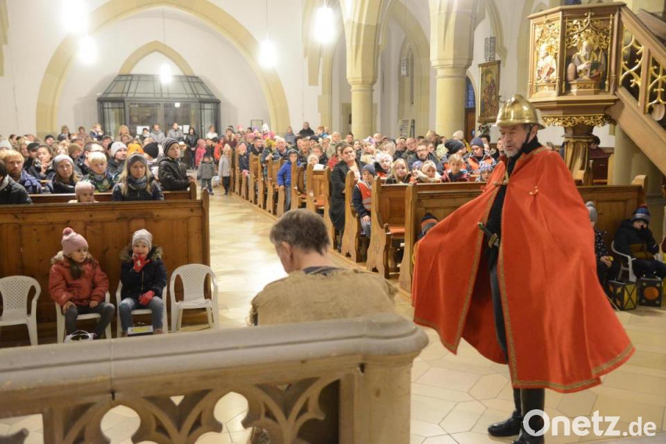 „Wer teilt, der wird froh“, sangen die Mädchen und Buben aus dem Kindergarten St. Elisabeth bei der Martinsfeier am Freitagabend in der Stadtpfarrkirche St. Sigismund in Pleystein. Pfarrer Adam Karolczak nannte den heiligen Martin ein Vorbild, weil er den Menschen aufzeige, wie durch Teilen anderen geholfen werden kann. Beim Martinsspiel teilte Martin (Johann Walbrunn)mit dem Schwert seinen Mantel, um eine Hälfte davon dem Bettler (Markus Süß) zum Schutz gegen die Kälte zu geben.