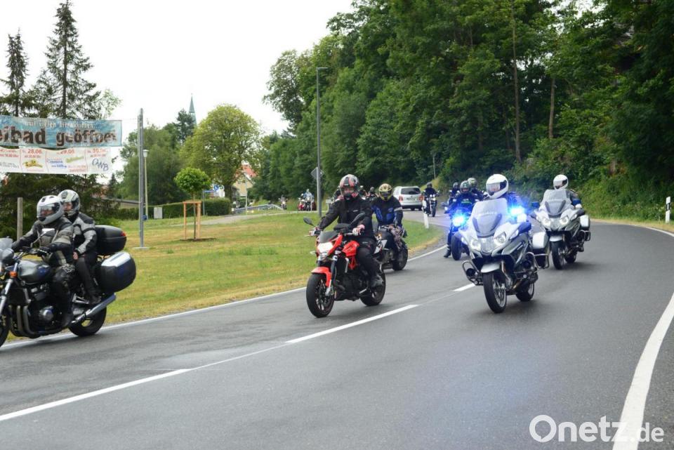 Bürgermeister Rainer Rewitzer beobachtete das Geschehen und die technische Vielfalt der Motorräder ebenfalls mit Interesse. Nach einem kurzen Aufenthalt und einer Stärkung mit Kaffee und Leberkässemmel zog der Tross weiter in Richtung Floß, Flossenbürg und Falkenberg. Ziel war die Wallfahrtskirche Armesberg bei Kemnath. Dort wurde ein Gottesdienst gefeiert.