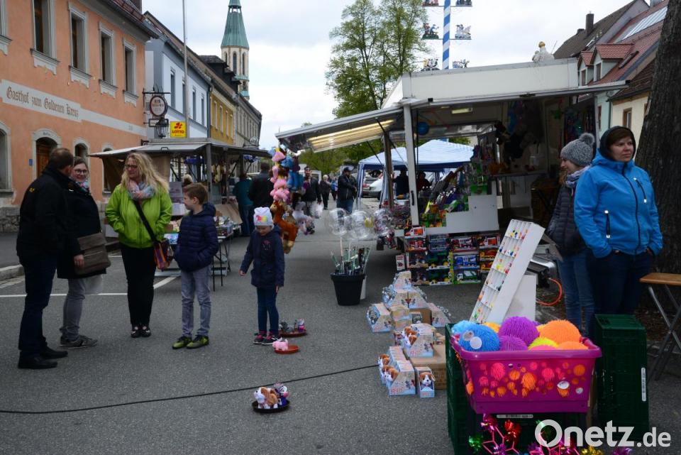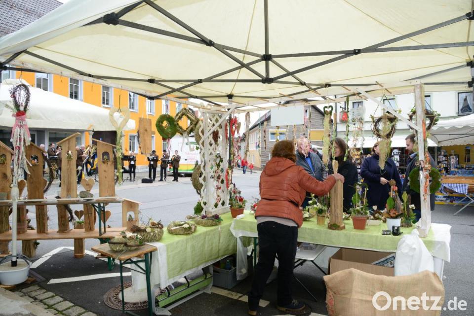 Vielleicht lag es aber zum Teil auch daran, dass ein ähnlicher Markt in Tirschenreuth stattfand. Doch der immer wieder aufkommende Sonnenschein machte den Rundgang über den Marktplatz doch noch einigermaßen angenehm, vor allem für die Besucher, die sich kleidungsmäßig den wenigen Graden über dem Gefrierpunkt angepasst hatten. Süßwaren oder Käse aus dem Allgäu, Honig, Lederwaren, Kurzwaren und vor allem Kinderspielzeug waren im Angebot. Auf dem Zimmerplatz fuhr der Miniexpress nach El Paso, ein Karussell mit Schaukeln drehte seine Runde. Um 13 Uhr lud die Stadtkapelle Pleystein zum einstündigen Standkonzert ein, das mit dem immer gern gehörten „Böhmischen Traum“ und dem „Pleysteiner Marsch“ endete. Bürgermeister Rainer Rewitzer spendierte der Kapelle eine Runde Klaren, der diesmal wirklich seine „aufwärmende Rolle“ erfüllte.