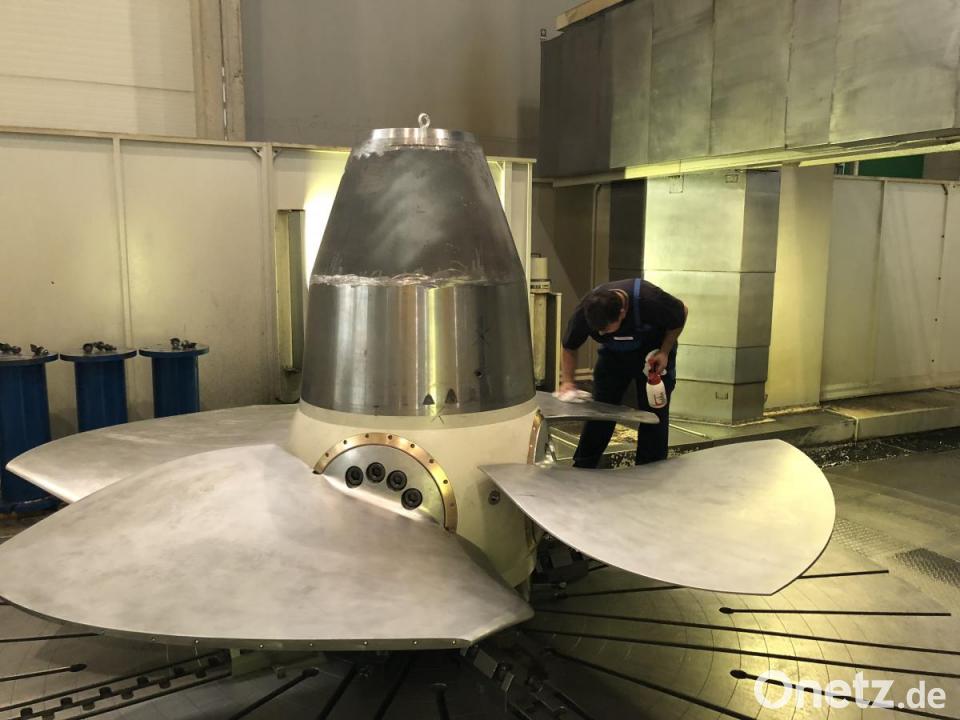 "Wir produzieren Francis-, Kaplan- und Pelton-Turbinen", bringt Giersemehl das Kerngeschäft des Betriebs auf einen kurzen Nenner, "unterschiedliche Turbinentechnologien, die sich unter anderem in der Größe unterscheiden und in der Fallhöhe des Wassers, für die sie ausgerichtet sind". Sieben, acht Mitbewerber stünden weltweit in Konkurrenz um öffentliche und private Aufträge, wobei: "Die ganz großen Anlagen können wir nicht bestücken. Das ist dann was für Siemens und Co.", grenzt Mittelständler Giersemehl den Markt für die Kochendörfer-Turbinen ab.