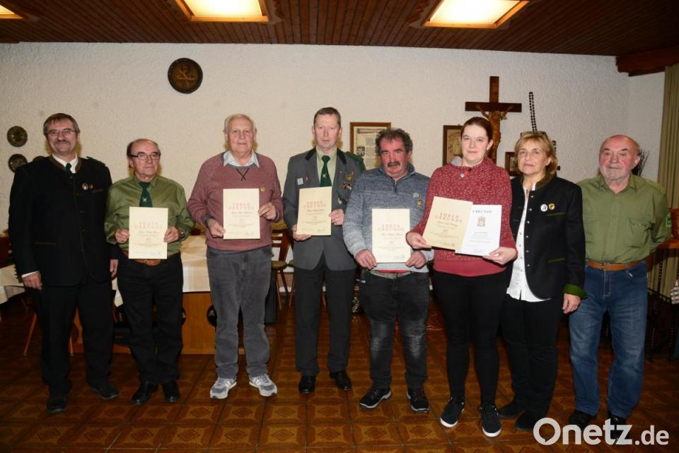 Ein weiterer Höhepunkt der Königsfeier war die Ehrung langjähriger Mitglieder. Mit Dankurkunden und Ehrennadeln dankten der Bayerische und der Deutsche Schützenbund den treuen Mitgliedern. Seit 60 Jahren ist Walter Pflaum Mitglied der Pleysteiner Schützen. Alois Hubmann und Herbert Stahl gehören dem Schützenverein seit einem halben Jahrhundert an. Herbert Meierl und Josef Hartwig sind seit 40 Jahren Mitglied. Schützenmeisterin Annelie Stahl würdigte die langjährigen Mitglieder als „Unterbau des Vereins“ auf dem die aktiven Schützen arbeiten können.