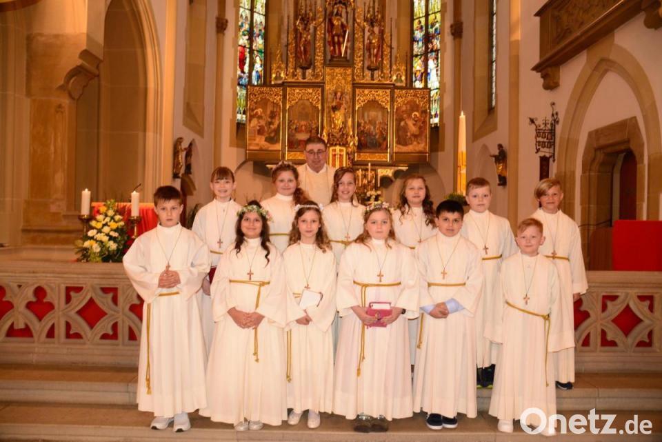 Sieben Mädchen und fünf Buben feierten am Sonntag in der Stadtpfarrkirche St. Sigismund ihre heilige Erstkommunion. „Wir sind ein Ton in Gottes Melodie“ lautete das Motto. Passend dazu fanden sich die Bildchen der Kinder eingefügt in Musiknoten auf einer großen Tafel neben dem Altar. Stadtpfarrer Pater Hans Ring zeigte sich überzeugt, dass die Kommunionkinder mit Sehnsucht darauf gewartet haben, zum ersten Mal das Brot des Lebens gereicht zu bekommen.
