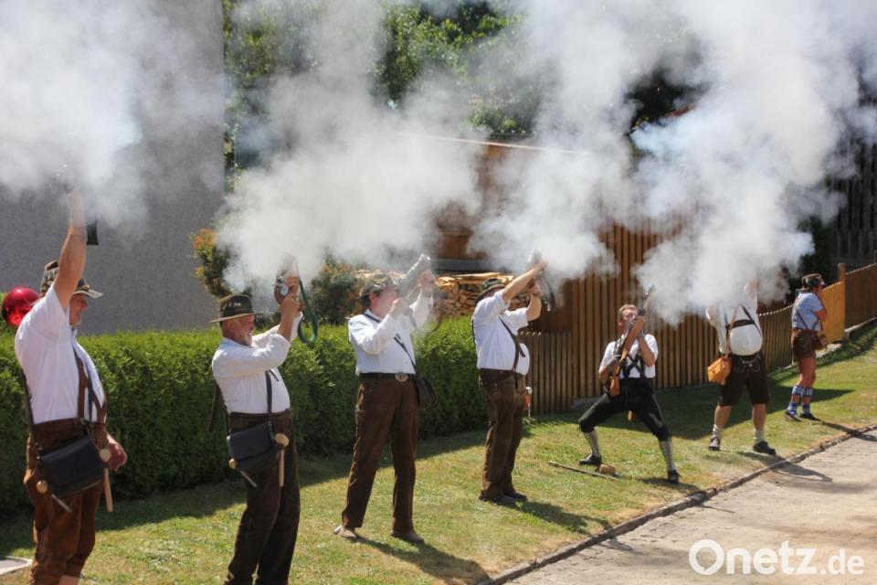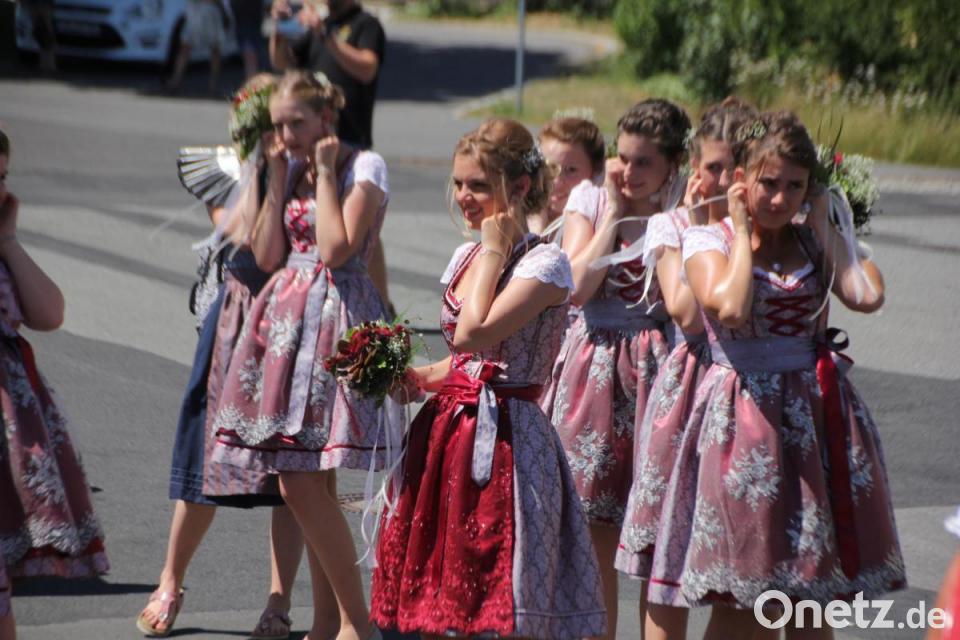 "Angeschossen" wurde der Festzug von den Tirschenreuther Böllerschützen. Eine historische Wasserspritze führte den Zug an, ehe verdiente Plößberger Feuerwehrkameraden in fünf Cabrios durch die Ortschaft chauffiert wurden. In ihren wunderschönen Dirndl folgten die zwölf hübschen Festdamen, unter ihnen auch die 1,0-Abiturientin Larissa Weiser, mit ihrer Festbraut Corinna Gleißner. Nicht fehlen durften auch die Festdamen der vergangenen Jubiläen der Plößberger Wehr. Unter den Festzugsteilnehmern waren auch Ehrenschirmherr Bürgermeister Lothar Müller, Schirmherr Landtagsabgeordneter Tobias Reiß, Bundestagsabgeordneter Albert Rupprecht und Bezirksrat Toni Dutz. Mit dabei waren auch die polnischen Feuerwehrkameraden aus der Partnerstadt Goczalkowice-Zdroj.