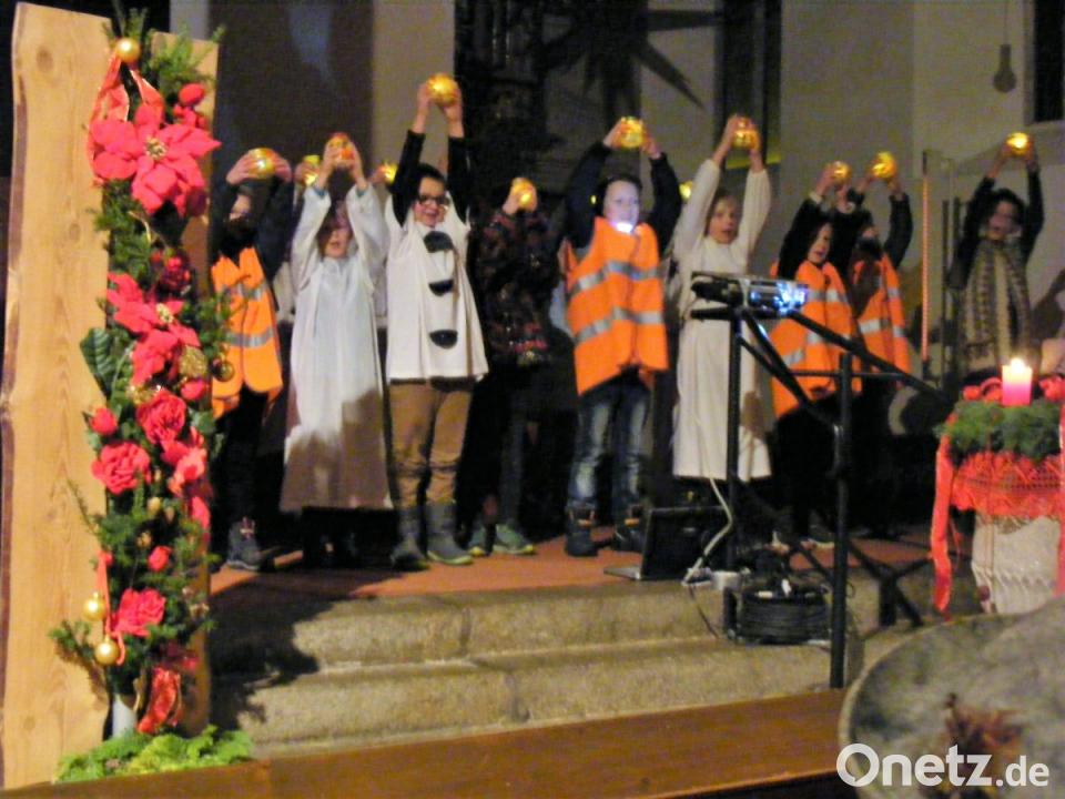 In einem "etwas anderem Krippenspiel" versuchte die Kombi-Klasse 2/3, traurigen Kindern eine Lösung für ihre Probleme anzubieten. Zwischen den Beiträgen spielten Sabine Sollfrank, ihr Mann und Ulrike Remold weihnachtliche Weisen. Den Abschluss bildete das gemeinsame Lied "Tragt in die Welt nun ein Licht". Der Elternbeirat hatte dazu an jedes Kind eine Lichttüte ausgeteilt, so dass in der abgedunkelten Kirche eine schöne Atmosphäre herrschte. Die Elternbeiratsvorsitzende Theresia Albrecht bat zum Schluss alle Besucher um eine kleine Spende, die "Engel" am Ausgang in Körbchen einsammelten.
