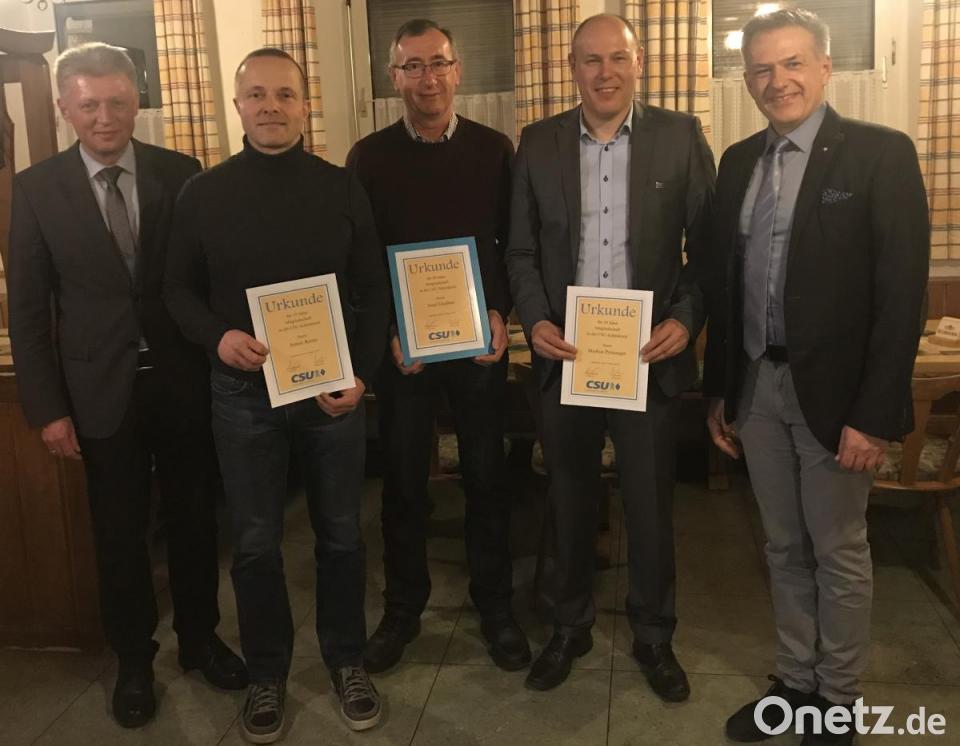 Nach den Neuwahlen wurden Armin Reiter für 15 Jahre Mitgliedschaft, Markus Preisinger für 20 Jahre sowie Josef Gleißner für 40 Jahre Mitgliedschaft geehrt. Vorsitzender Markus Preisinger bedankte sich für die Treue zur CSU Schönkirch und überreichte den Geehrten jeweils eine Urkunde und ein Präsent.