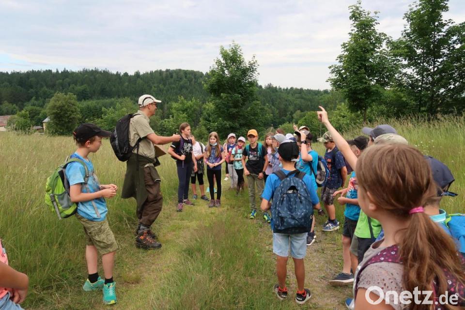 An zwei Tagen besuchten die Klassen 2 bis 4 der Grundschule das FFH-Gebiet Altglashütte. Die Kinder lernten den Unterschied zwischen Mager- und Fettwiesen kennen und bestaunten, fotografierten und bestimmten die zahlreichen Blumen der geschützten Magerwiesen. Unter sachkundiger Führung des Naturpark-Rangers Heiko Hoffmann fingen die Kinder Insekten in Becherlupen, um sie zu bestimmen. Natürlich wurden die Insekten wieder frei gelassen.