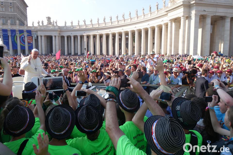 Auf dem Petersplatz sammelte sich am Dienstagabend die riesige internationale Ministrantenschar zur Sonderaudienz mit Papst Franziskus. Er fuhr mit seinem Papa-Mobil durch die Menschenmenge, so dass viele Ministranten dem Oberhaupt der Kirche für einen kurzen Moment ganz nah sein konnten. Der Tag klang mit einem kurzen Fußmarsch an den Trevi-Brunnen und die spanische Treppe aus.