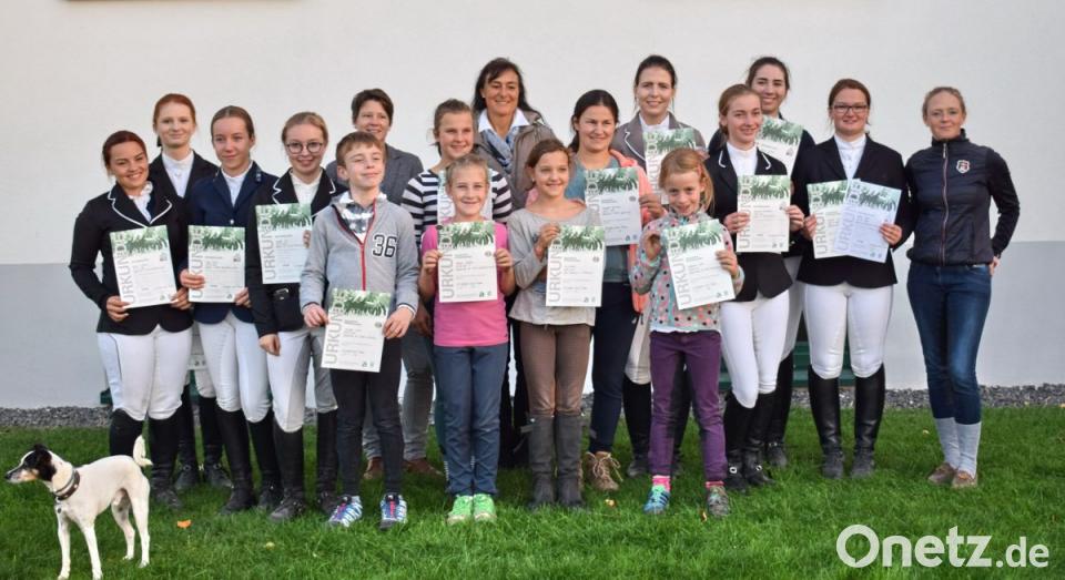 17 überwiegende junge Reiter hatten sich auf der Reitanlage Plössen über Wochen intensiv auf das Reitabzeichen vorbereitet. Bei den Prüfungen bestanden sie dann alle mit Bravour.