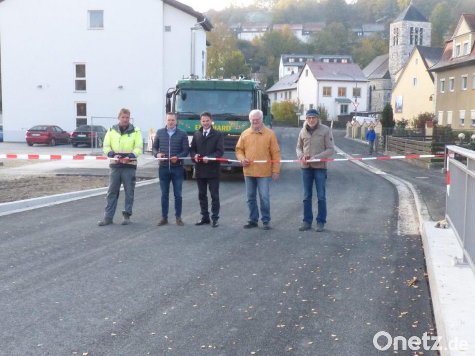 Bürgermeister Jörg Fritsch schnitt mit seinem Bauhofchef Christian Brand, Vertretern der Baufirma Englhard und dem Planer Manfred Raum symbolisch das Sperrband durch. Sie mussten nicht lange warten, bis der erste Lastwagen vorbeirollte. Eine neue Bushaltestelle entzerrt den Engpass vor dem Bahnhof. Die Verbreiterung der Zufahrt auf 7,50 Meter und der veränderte Radius ermöglichen auch größeren Fahrzeugen einen reibungslosen Begegnungsverkehr. Hauptziel war, den in die Jahre gekommenen Brückenkörper zu erneuern und den Anforderungen des enorm gestiegenen Verkehrs anzupassen, seit der Bahnhof zur Endstation der S-Bahnlinie 1 des VGN geworden ist. Ab Mai wurde auf der großen Baustelle gearbeitet. Der Verkehr nahm in dieser Zeit eine Umleitung. Diese wird nun abgebaut; auch die Seitenflächen werden wieder hergerichtet.