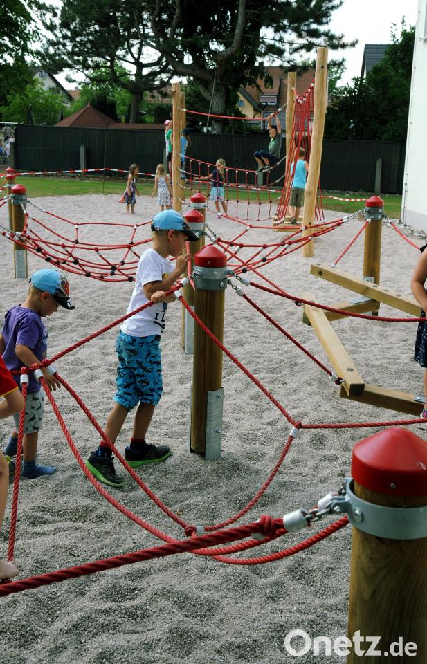 Pfarrer Dominik Mitterer und Diakonin Regina Reymann erbaten Gottes Segen für den neuen Niedrigseilgarten, der beim Sommerfest seiner Bestimmung übergeben wurde. Im Namen der Lehrkräfte wünschten Monika Schmidt und Janina Schmidt, die künftige Rektorin der Grundschule Poppenricht, der scheidenden Kollegin alles Gute für ihr weiteres Berufsleben. Umrahmt wurde das Schulfest von der Flötengruppe und dem Schulchor.