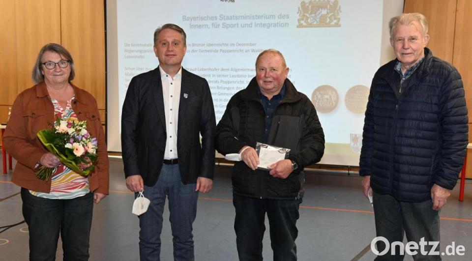 Mit einem bunten Blumenstrauß erinnerte der Poppenrichter Bürgermeister Hermann Böhm daran, dass die SPD-Gemeinderätin Waltraud Lobenhofer im Dezember 2021 vom Regierungspräsidenten Axel Bartelt mit der Kommunalen Verdienstmedaille in Bronze ausgezeichnet worden ist. Seit 1989 sei sie Mitglied des Poppenrichter Gemeinderats und "engagiert sich vorbildlich und mit Herzblut für die Belange der kommunalen Selbstverwaltung". Waltraud Lobenhofer gehöre seit drei Jahrzehnten verschiedenen Ausschüssen des Gemeinderats an, verfüge über fundierte Sachkenntnis und zeige Gemeinsinn. Als Jugend- und Seniorenbeauftragte habe sie sich für jüngere Gemeindebürger, aber auch für die Älteren starkgemacht.