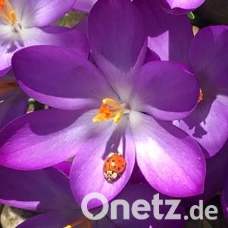 Das Insekt sonnt sich auf einem lilafarbenen Krokus. Claudia Wesnitzer hat den Marienkäfer in ihrem Garten in Poppenricht gefunden und mit der Kamera festgehalten.