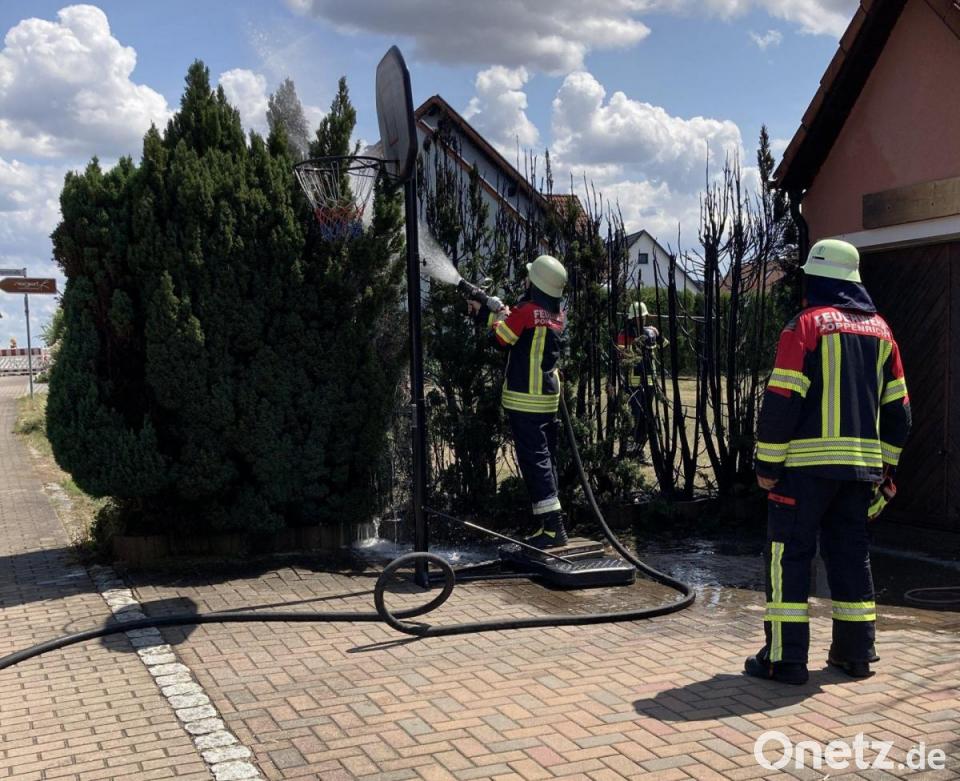 Hecke in Poppenricht brennt dank Unkrautbeseitigung mit Bunsenbrenner