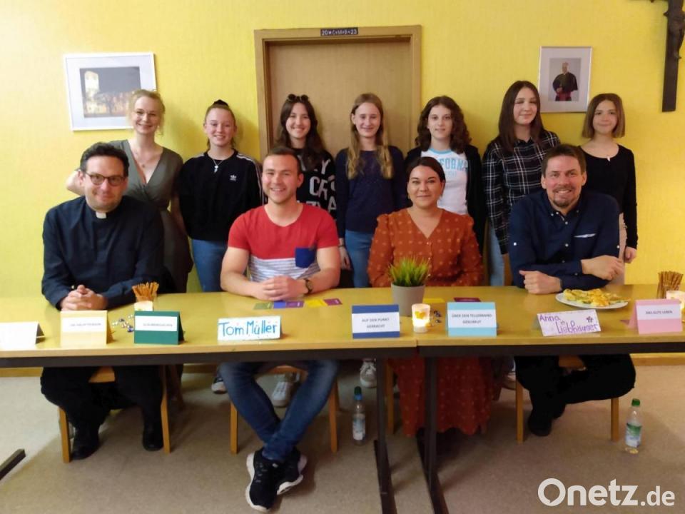 Das Jugendvesperteam der Pfarrei St. Michael Poppenricht hat zum Glaubenstalk ins Pfarrheim eingeladen. Rednergäste waren Kirwavorstand Tom Müller, Chorleiterin Anna Liebhäuser sowie Pfarrer Dominik Mitterer und Kirchenpfleger Stefan Hüttl. Aus verschiedenen Rubriken, wie "Glaubenssachen" oder "Rund um den Kirchturm" wurden Fragenkarten gezogen, die die Teilnehmer beantworteten.
