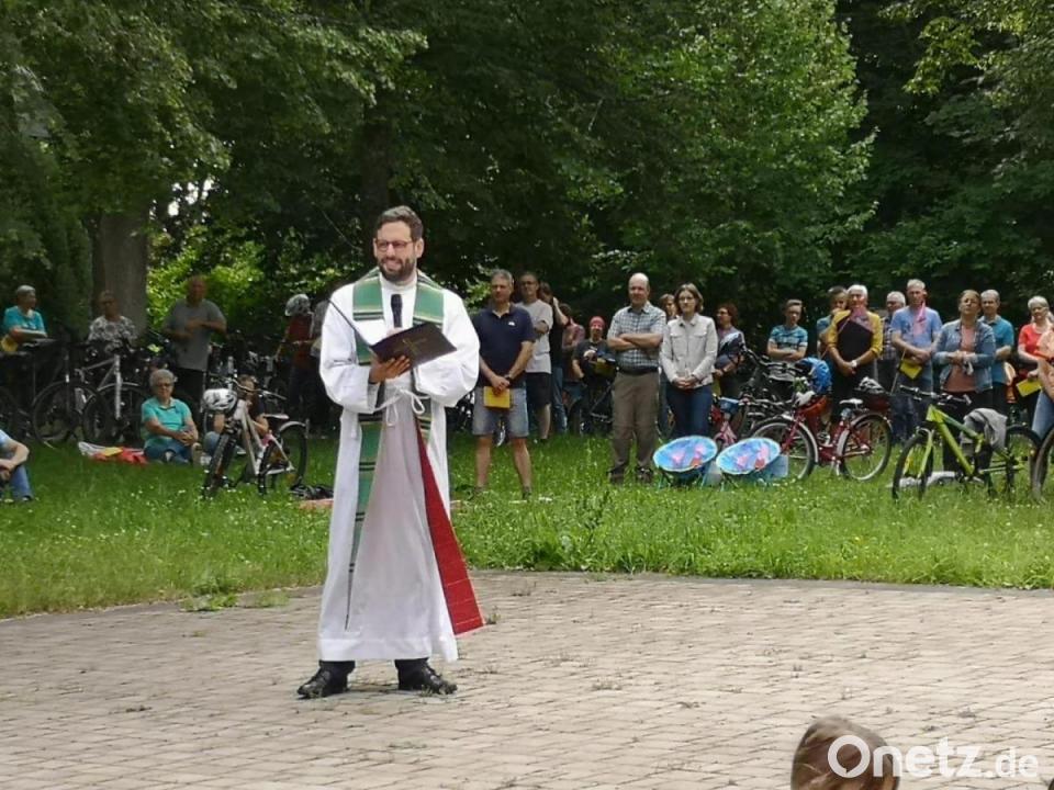 Zahlreiche Fahrradfahrer nutzten das Angebot der Pfarrei St. Michael Poppenricht und kamen zur Radlmesse auf dem Frohnberg. Dort konnten sie ihre Räder segnen lassen und sich eine Christophorus-Plakette holen. Der Legende nach trug der Riese Ophorus das Jesuskind über den Fluss und wurde somit zu Christophorus, was Christusträger bedeutet. Pfarrer Dominik Mitterer sagte dazu: „Nicht wir, sondern ein anderer, ein Größerer, ein Stärkerer führt den Stab und bringt uns sicher ans Ziel: Jesus Christus.“ So wie einst Christophorus die Menschen sicher über den Fluss gebracht habe, so wünschten sich die Gläubigen heute, dass sie in ihrem Unterwegssein auf die Fürsprache des heiligen Christophorus hin von Christus geführt und sicher begleitet werden.