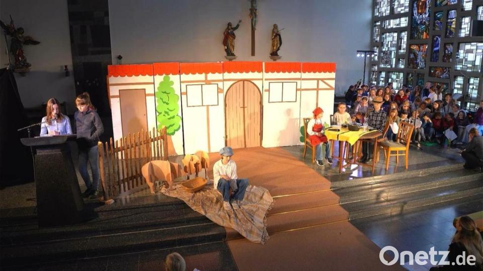 Los geht die Geschichte, wie sich der jüngere Sohn von seinem Vater sein Erbe auszahlen ließ und in die Ferne zog. Nachbarinnen beobachteten das Ganze und sahen, wie traurig der Vater über den Fortgang seines Sohnes war und wie sich die Diener um den Vater kümmerten. In der Ferne geriet der Sohn an falsche Freunde, die ihn gehörig ausnahmen. Andere Gäste sahen, wie die „falschen Freunde“ bald ein nächstes Opfer fanden. Schließlich landete der Sohn bei einer Bauernfamilie, wo er als Schweinehirte eine Anstellung fand. Nicht einmal vom Schweinefutter durfte er etwas essen, so tief war er gefallen. Da beschloss der Sohn, heimzugehen zu seinem Vater. Dieser sah ihn von Weitem kommen und rannte ihm entgegen. Der Vater, alias Johnny Ambros, legte einen Sprint quer durch die Kirche hin, lief seinem Sohn entgegen und fiel ihm in die Arme. Vor Freude, dass der Sohn wieder heimgekommen war, ließ der Vater ein Fest ausrichten. Der ältere Sohn fand das ungerecht, aber der Vater redete ihm gut zu. Schließlich sei er doch immer bei ihm und alles, was ihm gehöre, gehöre auch ihm, aber jetzt müsse er sich doch freuen, sein Bruder war „verloren und ist wiedergefunden worden, er war tot und lebt wieder.“ Am Ende feierten alle zusammen ein „himmlisches Fest“. Die Jüngsten des Chores tanzten als kleine Engelchen beim festlichen Schlusslied durch die Kirche.