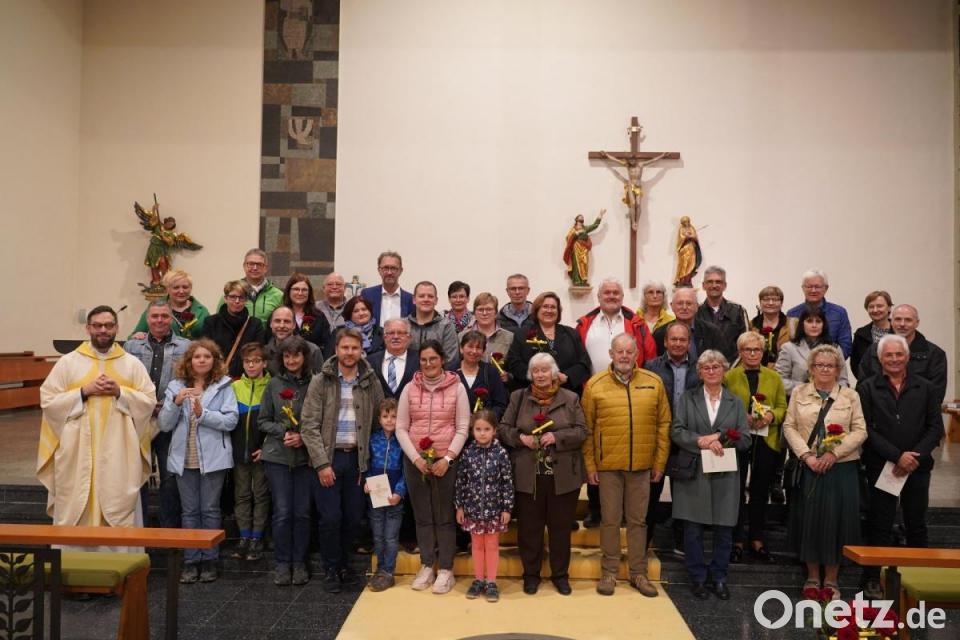 Die Pfarrei St. Michael Poppenricht feierte einen „Erntedank der Ehe“ mit 22 Paaren, die in diesem Jahr ein Ehejubiläum begehen. Pfarrer Dominik Mitterer gratulierte den Eheleuten, die auf viele gemeinsame Jahre zurückblicken können. Er selbst finde es „sehr mutig, sich auf einen Menschen einzulassen und sich ein ganzes Leben an ihn zu binden“. Dass das gelingen könne und sinnerfüllend sei, zeigten die Paare, die sich zu diesem Gottesdienst eingefunden hätten und ihre Liebe feierten. Pfarrer Mitterer lud die Ehepaare ein zu überlegen, wofür sie ihren Partnern in all den Jahren des gemeinsamen Weges dankbar sind. Er ermutigte die Jubilare, sich die Dankbarkeit zu zeigen und darüber zu reden. Um den Altar versammelt, bekamen die Eheleute erneut Gottes Segen zugesprochen. Für stimmungsvolle Musik sorgte die Gruppe „Kreuz & quer“ mit Liedern rund um die Liebe. Der Arbeitskreis Ehe und Familie des Pfarrgemeinderats unter Federführung von Alex März übergab rote Rosen an jedes Paar und lud zu einem Sektempfang im Schützenheim ein, was die Eheleute gerne annahmen.