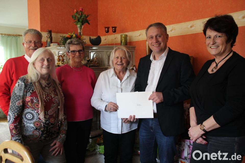 Trotzdem hat die Jubilarin ihr Lachen nicht verloren und freut sich über die zahlreichen Besucher zu ihrem Ehrentag. Darunter auch Bürgermeister Hermann Böhm, der einen Gutschein und Eierlikör überreichte.