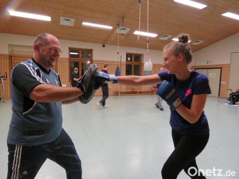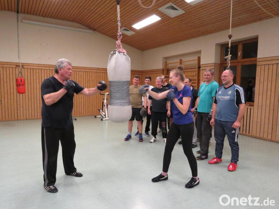 Die Teilnehmer im Alter zwischen 17 und 72 Jahren stammen aus der weitläufigen Umgebung von Premenreuth. "Es gehören auch einige Frauen zu uns", fügt Willi Dietz stolz an, während er die 20 Kilogramm schweren Box-Sandsäcke mit starken Seilen an die Decke hängt. Verena Konz, 22 Jahre jung, betritt eben den geräumigen Sportraum im ersten Stock der Mehrzweckhalle. Sie mache das bereits seit acht Jahren, sagt die superschlanke Premenreutherin. Das sei billiger als ein Fitnessstudio und mindestens ebenso effektiv. "Mein Vater und mein Bruder kommen auch gleich", sagt sie.