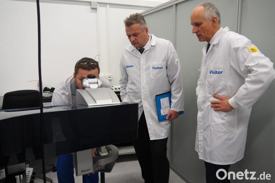 Beim Rundgang durch das Unternehmen überzeugte sich der Staatssekretär von dem Gehörten. Gezeigt wurde auch eine Reinraum-Fertigung. Dabei konnte Weigert sehen, dass ein Augenlaser-System im Wesentlichen aus drei Komponenten besteht. Mit dem "Eye-Tracker" wird die Pupille untersucht, der Femtosekunden-Laser legt die Hornhautschicht frei und der Examiner-Laser bringt die Hornhaut zur erwünschten Sehstärke.