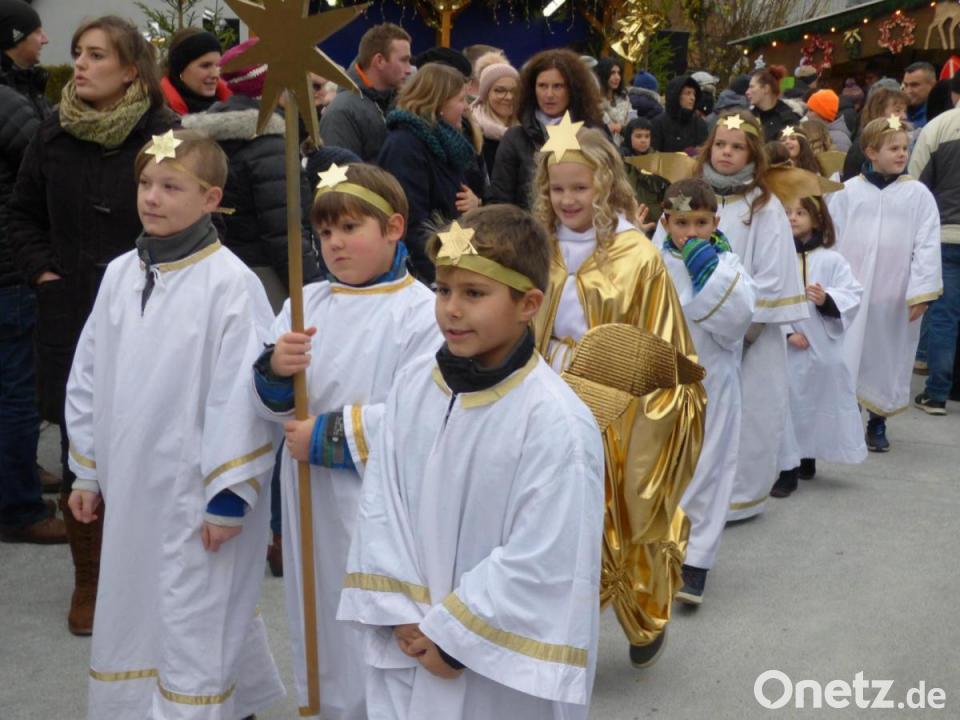 Unter den Klängen des Bläserensembles der Musikschule Vierstädtedreieck zog gegen 14 Uhr das Christkind in Person von Matilda Schraml mit seinen Engeln ein. Zu diesem Zeitpunkt gab es im Marktbereich beinahe kein Durchkommen mehr. Der frühere Bürgermeister Konrad Merkl in Person des Heiligen Nikolaus und Josef Rupprecht als dessen Knecht verteilten Süßes an die Kinder.