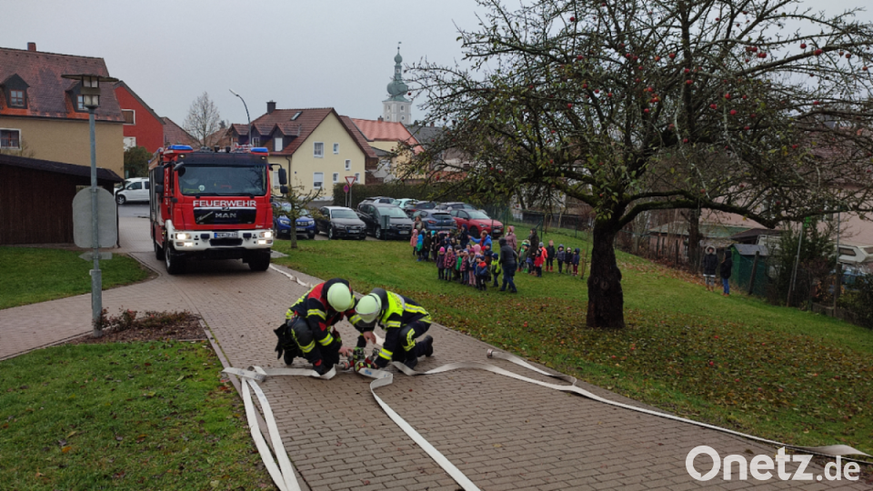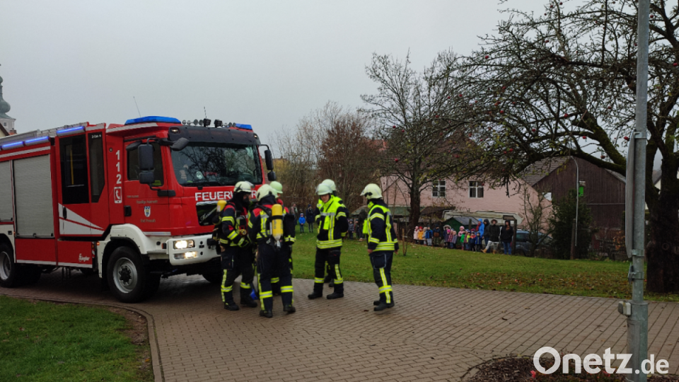 Feueralarm im Pressather Kindergarten. Glücklicherweise war es kein echter, sondern eine Übung, zu der Feuerwehr anrückte. Für die Kinder unerwartet lösten die Feuer- und Rauchmelder im Pressather Kindergarten plötzlich Alarm aus. Zusammen mit dem Team verließen die Kleinen gruppenweise das Kindergartengebäude und sammelten sich im Freigelände. Wenig später war das Martinshorn der Feuerwehr zu hören. Mit Blaulicht trafen die Helfer ein. Kommandant Andreas Kneidl gab nach kurzer Erkundung der Lage den Einsatzbefehl zum Aufbau der Löschleitungen. Atemschutzgeräteträger durchsuchten das Gebäude nach Personen. Routiniert wurden die Schlauchleitungen gelegt und die simulierte Brandbekämpfung in Angriff genommen. Für die Kinder war es ein besonderes Erlebnis, so einen Einsatz aus nächster Nähe mitzuerleben und zu sehen, wie professionell gearbeitet wurde, um einen möglichen Brand schnell unter Kontrolle zu bringen. Kindergartenleiterin Barbara Krauthahn dankte Andreas Kneidl und seiner Mannschaft für das rasche Eingreifen.