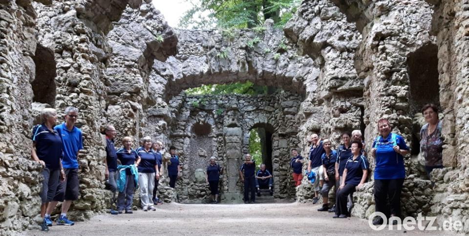 (exb) In aller Früh führte die Fahrt zum Markt Wonsees im Landkreis Kulmbach. Von dort wurde zu einer 2stündigen Rundtour aufgebrochen. Der Weg führte durch das Wacholdertal, vorbei dann an den Ortschaften Sanspareil und Zedersitz. Zurück ging es entlang des Schwalbachtales wieder nach Wonsees. Dort konnten die Walker bei einem ausgezeichnetem Mittagessen die verlorenen Kräfte auftanken. Nachmittags wurde dann der Felsengarten Sanspareil besichtigt. Die wuchtigen Felsformationen mit dem Ruinen- und Grottentheater und die riesigen alten Baumbestände beeindruckten die Teilnehmer schon sehr. Abgeschlossen wurde die Besichtigung mit dem Besuch des dortigen Schlosscafes. Bei Kaffee, frisch gebackenem Kuchen und großen Windbeuteln klang die Fahrt ins Blaue aus. Zum Abschluß bedankte sich Abteilungsleiter Wolfgang Graser bei der Trainerin Birgit Weinhold für die Planung dieses wunderbaren Ausflugs. Den Teilnehmern versprach er für nächstes Jahr wieder so eine Fahrt. Jedoch nach zweimal ins Fränkische, wird dann mal in der Oberpfalz geblieben.