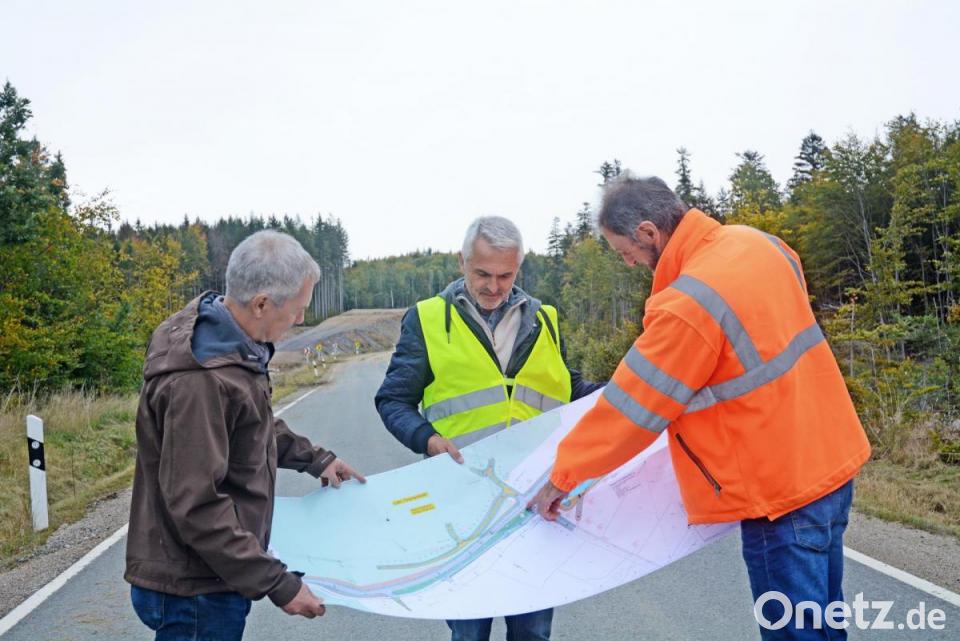 Doch dieser Bereich der insgesamt 4,7 Kilometer langen Strecke ist derzeit noch nicht an der Reihe. Die Hauptarbeiten konzentrieren sich zunächst auf das 2 Kilometer lange Teilstück auf Erbendorfer Seite, das nach Aschen- und Eppenhof führt. Und dort sind die Bauarbeiten bereits gut vorangeschritten, berichtet der Baudirektor. Die Straße wurde von rund 5 auf 7,5 Meter erweitert, ein Regenrückhaltebecken ist entstanden. Seit Anfang Oktober wird nun die Tragschicht asphaltiert. Binder- und Feinschicht folgen bis Mitte Oktober. Dann ist das Teilstück, das laut dem Baudirektor fünf Millionen Euro kostet, fertig. Feinarbeiten wie Böschungen und Pflasterarbeiten sollen noch bis Ende November andauern. Doch Schulbusse und Anwohner können die Straße da schon wieder nutzen. Bislang mussten sich diese auf Sand und Schotter, entlang der Baufahrzeuge, einen Weg zu den Häusern bahnen. "Der Schulbusverkehr wurde aufrechterhalten", erklärt Projektleiter Hans Gschrey. Die Anwohner seien zum Glück geduldig mit der Großbaustelle gewesen, ergänzt Kederer dankbar.
