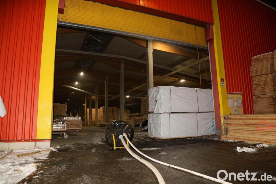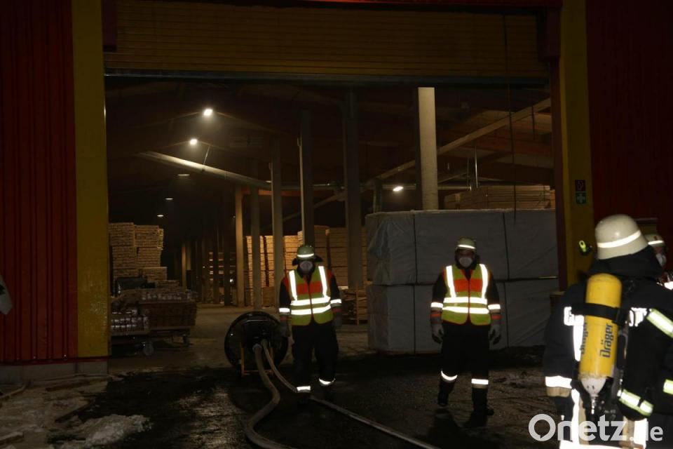 In einem holzverarbeitendem Betrieb im Pressather Industriegebiet Döllnitz brennt es.
