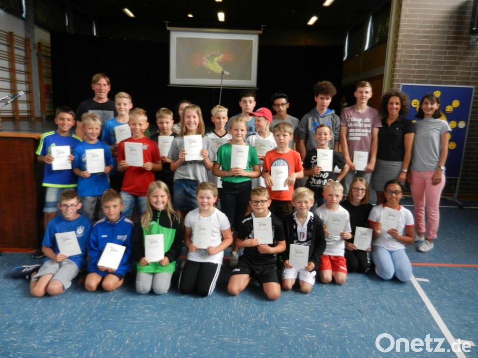 Bei den Jungen waren insgesamt 113 Sportler in den Disziplinen Wurf, Sprung, Lauf sowie Ausdauerlauf angetreten. 36 holten eine Sieger- und 19 eine Ehrenurkunde Die Mädchen erreichten bei 88 Teilnehmern 34 Mal eine Sieger- und sieben Mal eine Ehrenurkunde. Zusammen waren es 70 Sieger und 26 Ehrenurkunden. Konrektorin Eva-Maria Ficker sowie die Sportbeauftragten Martha Zintl und Tobias Schuller gratulierten den jungen Athleten und spornten die anderen an, sich das nächste Mal noch mehr anzustrengen.