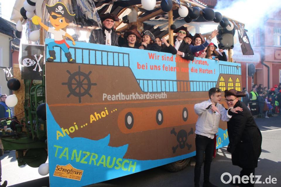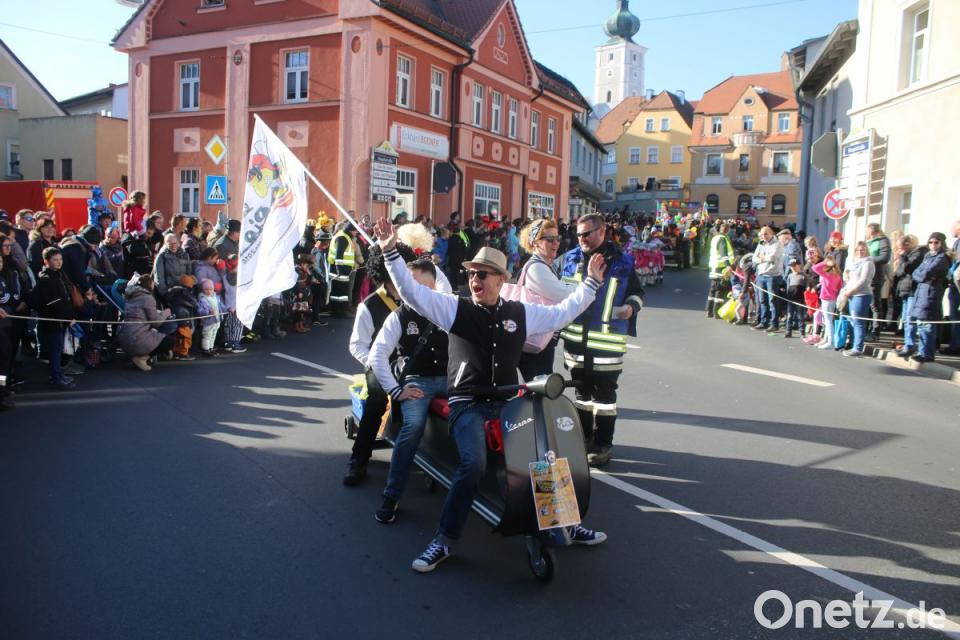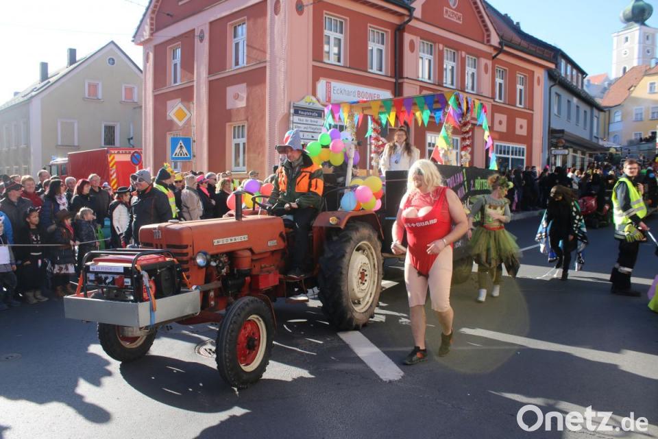 "Pressath Helau" hallte es am Samstagnachmittag allenthalben. Zwischen Haupt-, Bahnhofs- und Ludwig-Bock-Straße marschierten mehr als 34 Gruppen und 500 Teilnehmer durch die Stadt und jubelten den Tausenden von Zuschauern zu.