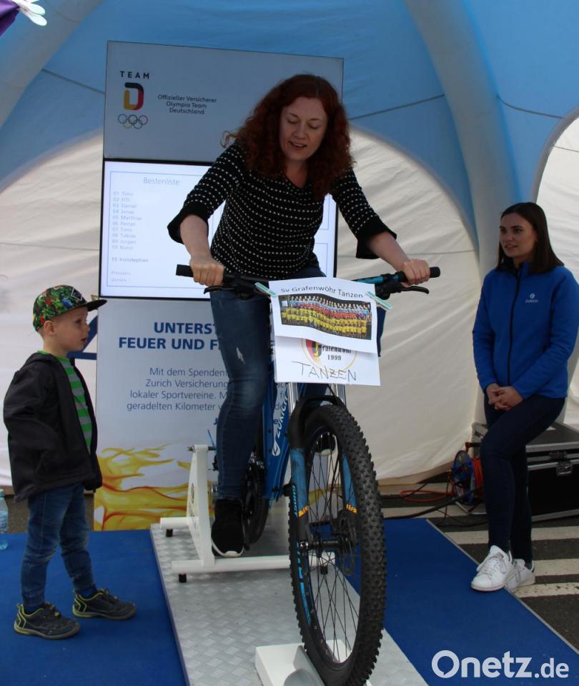 Viele Besucher radelten für einen guten Zweck. Für jeden gefahrenen Kilometer spendet die Zurich-Versicherung einen Euro an die SV-Tanzmädels Grafenwöhr und Narrhalle Weiden.