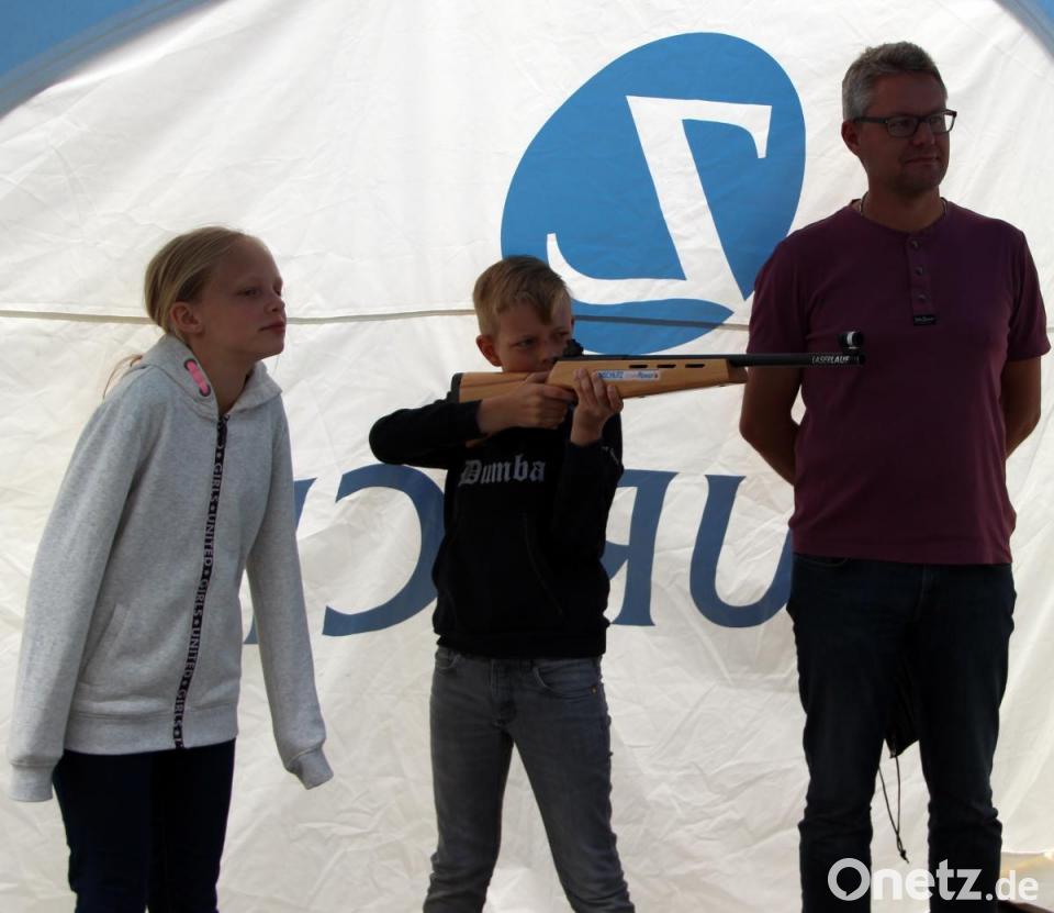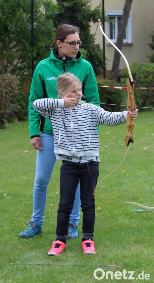 Diese junge Dame versuchte ihr Glück beim Bogenschießen. Learning Campus gab entsprechend Einweisung.
