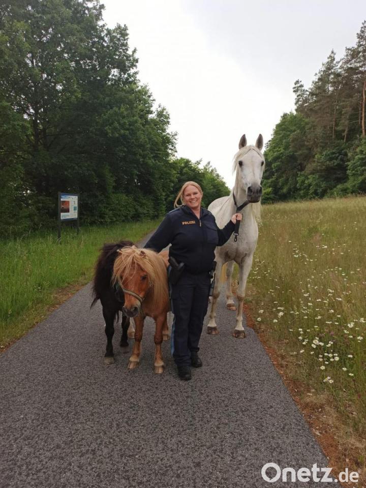 Zwei Shetland-Ponys und ein Araber-Schimmel bei Pressath: Wer kann die Ausreißer finden? Wer kann sie zügeln? Das sind die Fragen, mit denen sich die Polizei Eschenbach am Dienstagnachmittag beschäftigen muss, nachdem sie über die drei von einem eingezäunten Wiesengrundstück entlaufenen Tieren hörte. Der Eigentümer jedenfalls war nach Polizeiangaben nicht erreichbar. Und so musste eine Beamtin ran.