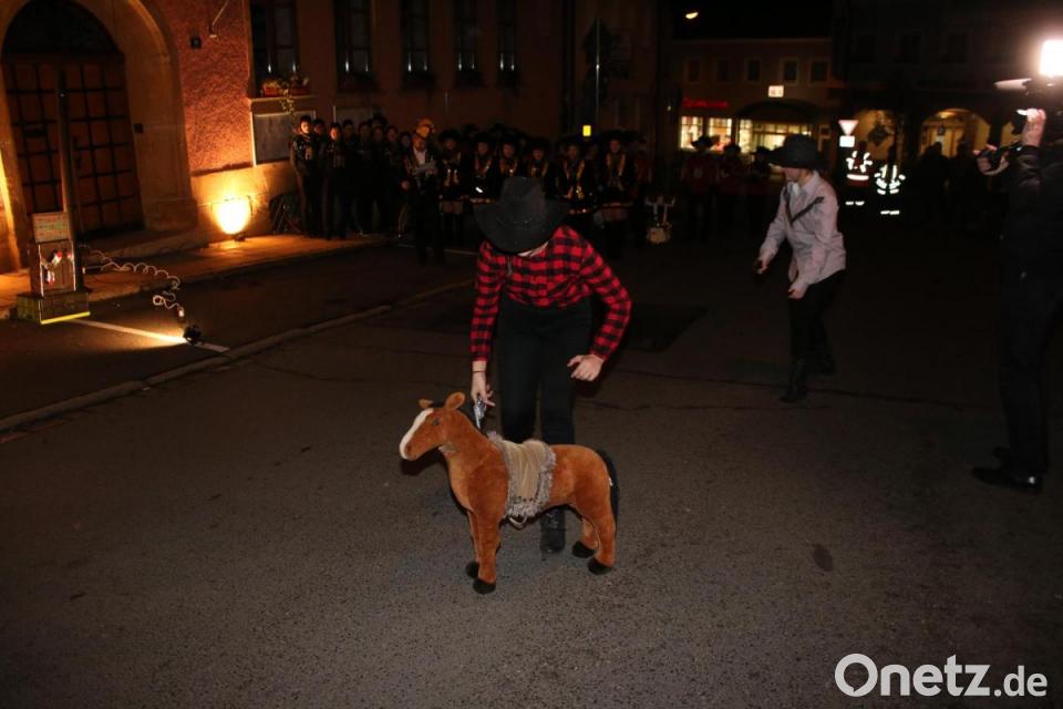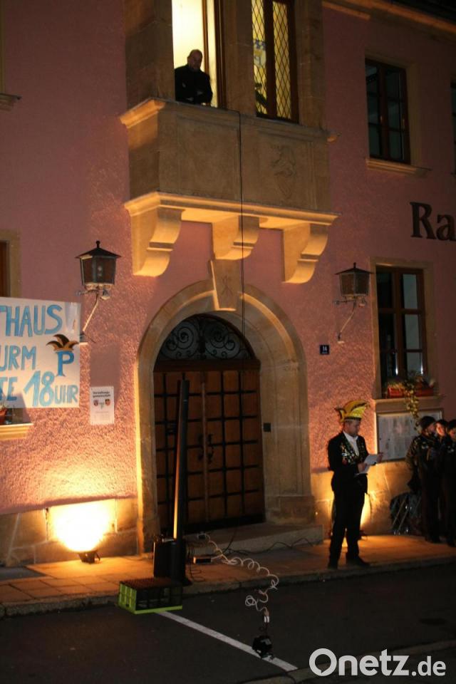 Erst eine königliche Drohung ließ zweiten Bürgermeister Maximilian Schwärzer einlenken. Den Pressathern bot sich wieder ein tolles Schauspiel auf der Hauptstraße vor dem Rathaus: Der Faschingsverein (PFV) wollte die närrische Zeit eröffnen und die Kontrolle über die Stadt erlangen. Dafür galt es aber zuerst, das Rathaus zu stürmen. Dieses Mal hatten sie es mit einem neuen Widersacher zu tun: Zweiter Bürgermeister Schwärzer vertrat Werner Walberer und verwehrte den Narren nun den Zugang.