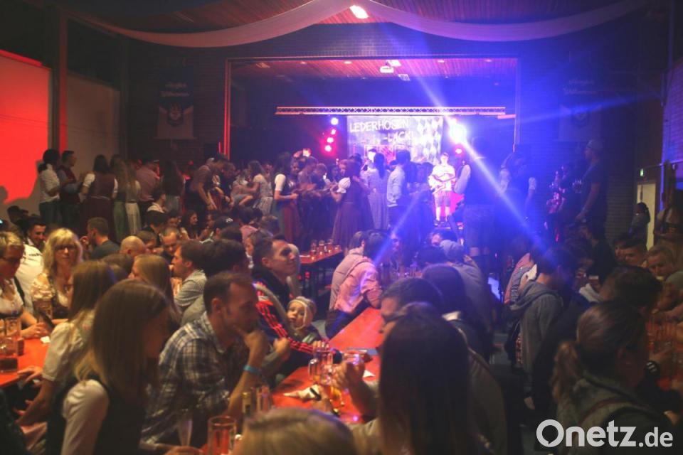 Die Mitglieder des TSV hatten Schmankerln vorbereitet un die Klopfertaxis schlenderten mit vollen Schnapskörben durch die Gänge. Als Volltreffer erwies sich die junge Band „Lederhosen Lackl“ aus Haidenaab und Speichersdorf. Die vier Musiker sorgten nicht nur für Stimmung, sondern brachten gleich zwei Busse voll mit Fans mit. Auswärtige und Einheimische verstanden sich prächtig; sie tanzten und klatschten gemeinsam zu Journey, Brian Adams und Bon Jovi. Auch unter den Amerikanern ist das Oktoberfest bereits bekannt. Viele amerikanische Mitbürger tummelten sich auf den Bänken und genossen das bayerische Festbier – ein gutes Beispiel für gelungene Integration.
