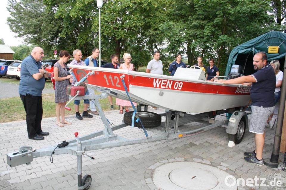 In einem Stadel unweit des Feuerwehrgerätehauses sind die Einsatzfahrzeuge der Pressather Rotkreuzbereitschaft und Wasserwacht untergebracht, daneben wurde ein Zelt für das batteriegetriebene Wasserwacht-Rettungsboot aufgestellt. „Verglichen mit den früheren provisorischen Unterstellplätzen ist das eine Verbesserung und fast schon ein Verwöhnprogramm, für das wir der Stadt dankbar sind“, betonte Florian Eibl, der bei der Rotkreuzbereitschaft als „taktischer Leiter“ und Chef der „Helfer vor Ort“ fungiert. Dennoch freue man sich auf den Umzug in den geplanten Feuerwehrhaus-Anbau. Dieser müsse auch Platz für ein vom Bund angekündigtes Katastrophenschutzfahrzeug reservieren und einen Waschplatz für die Wasserwachtausrüstung vorsehen, bemerkten Bereitschaftsleiter Thomas Rauch und Wasserwachtvorsitzende Sabine Wittmann.