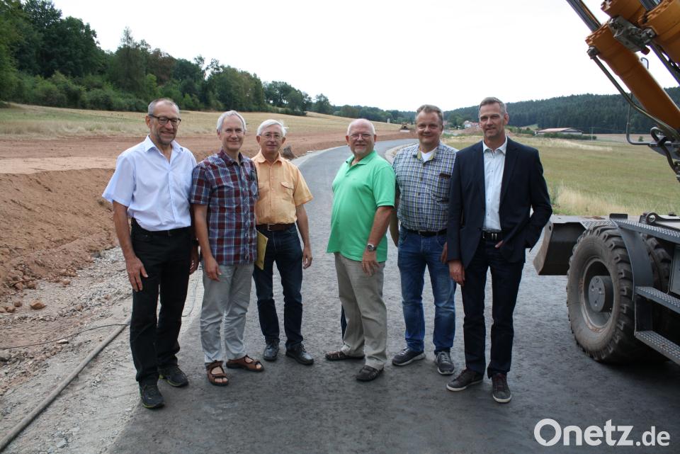 (bjp) Seit 3. April wird gebaut, im Oktober soll das symbolische rote Band zur Wiedereröffnung durchschnitten werden. Bei einem Ortstermin überzeugte sich eine Abordnung der Freien Wähler (FW) im Landkreis Neustadt/WN, dass die Straßenbauarbeiten planmäßig Kurs auf die Zielmarke halten. Fast 1,5 Millionen Euro flössen in den bestandsorientierten, also weitestgehend der bisherigen Trasse folgenden Ausbau von 4,5 auf 6 Meter Fahrbahnbreite, informierte Baudirektor Gerhard Kederer vom Staatlichen Bauamt Amberg-Sulzbach den stellvertretenden FW-Kreisvorsitzenden Karl Meier und seine Parteifreunde.