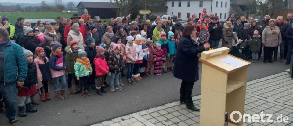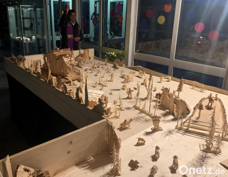 Pater Antony D`Cruz und Prädikantin Cornelia Treml segneten anschließend die Krippe. Der Pater sagte in seinen Worten, dass Jesus auf die Erde gekommen sei und die Krippe an die Begegnung von Mensch und Gott sowie Erde und Himmel erinnern solle.