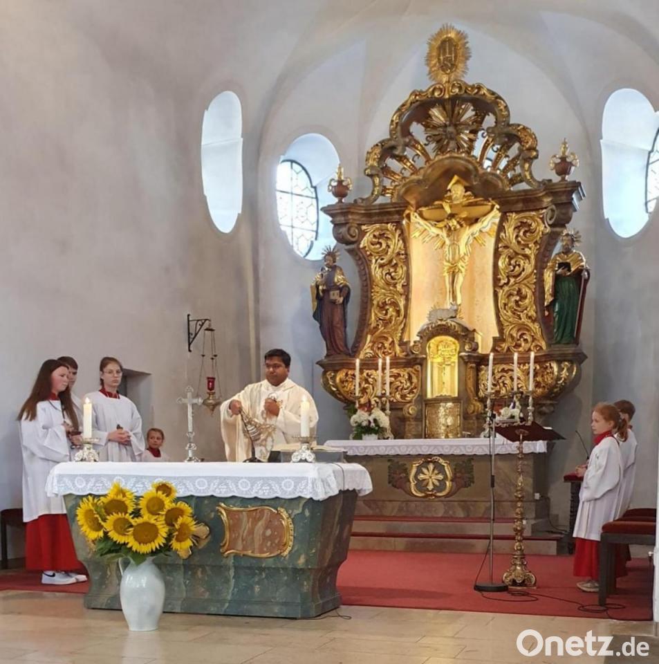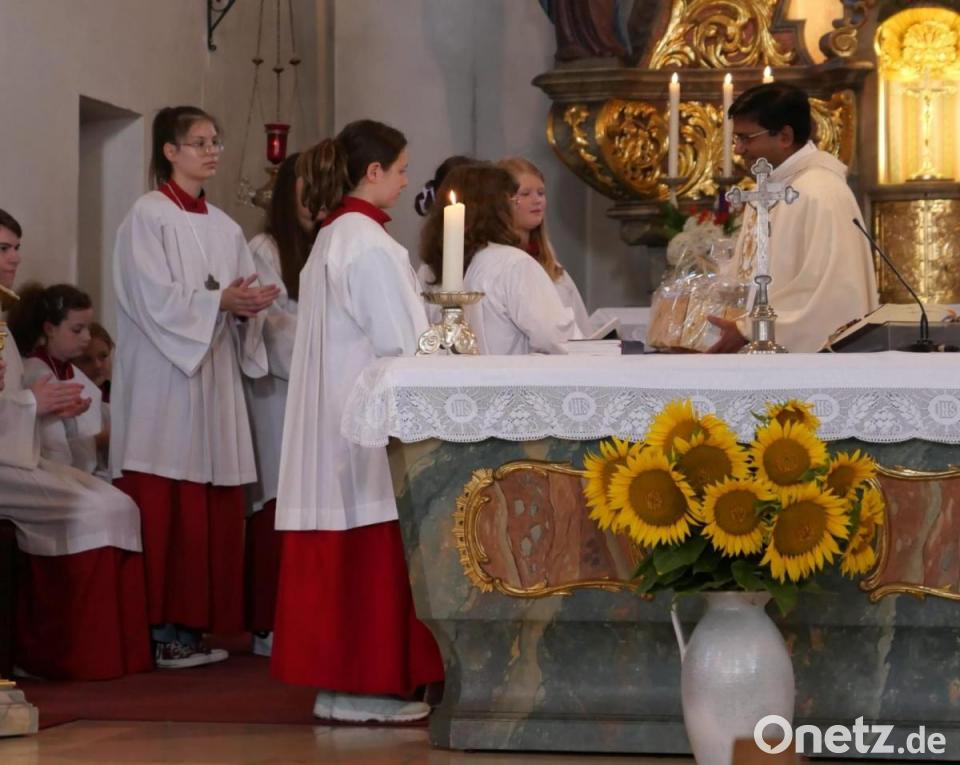 Danach übergaben die Ministranten der Pfarreiengemeinschaft ihre Geschenke und bedankten sich bei Pfarrer Pater Antony D´Cruz für die schönen zwei Jahre.