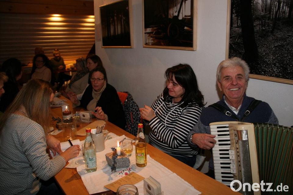 In seinem Gstanzl-Vortrag erzählt er von zwei "Kräuterweiberln" und meint damit Putzer und Müller. Sie lassen sich das aber gerne gefallen, weil es ja auch stimmt. Begleitet wird der Sänger von einem Akkordeon, das Klaus Putzer von daheim mitgebracht hat. Putzers Enkelin Nadine fertigt währenddessen Spielzeug-Rasseln aus Eicheln und vielen anderen Dingen an, die der Steinwald so hergibt. "Ich nehme das, was Geräusche macht und was ich im Herbst gefunden habe", fügt Nadine, die bereits einige der "Geräuschmacher" fertig hat, hinzu. Gelungen ist auch der Quitten-Apfelsaftansatz, der mit etwas Wein versetzt und mit Nelken gewürzt, den Geschmack des Schlehenpunsches aufwerten soll, den man am Ofen zugesetzt hat. Auf diesen freuen sich schon viele.