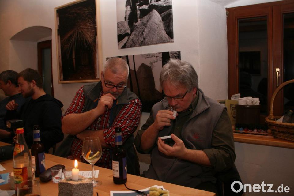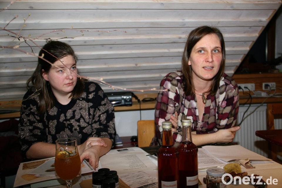 Inzwischen hat Anja Putzer den „Steinwald-Bärwurz“ geholt, den man bereits im Oktober angesetzt hat und der jetzt trinkfertig zu sein scheint. Eigens für den letzten Hutza-Abend hat die Glasschleif-Küche eine passende Speisen- und Getränkekarte kreiert. Darauf steht ein Vogelbeer-Likör, aber auch einer der mit Engelwurz angesetzt wurde. Minze, Melisse, Beifuß, Kümmel, Fenchel und Anis: auch die anderen Getränkespezialitäten klingen verlockend, die heute - neben einigen Brotzeiten - aus der Küche angeboten werden. Was man sich unter „Quittenfeuer“ vorzustellen hat, probiert man am besten selber aus. Schmecken lässt man sich auch den zimtigen Apfel. Und dass Birkensaft gut für die Haare sein soll, erfährt man ganz nebenbei auch noch. „Birken- und Lindenblätter können Sie auch als Beigabe im Salat verwenden“, erklären Müller und Putzer und raten dazu, die Zutaten einmal daheim auszuprobieren. „Power pur“, beschreiben die beiden Oberpfälzerinnen die gesammelten Produkte, die die Natur in Hülle und Fülle und zudem auch noch gratis liefert. „Die Birke hat Kraft. Sie bringt den Körper in Schwung.“