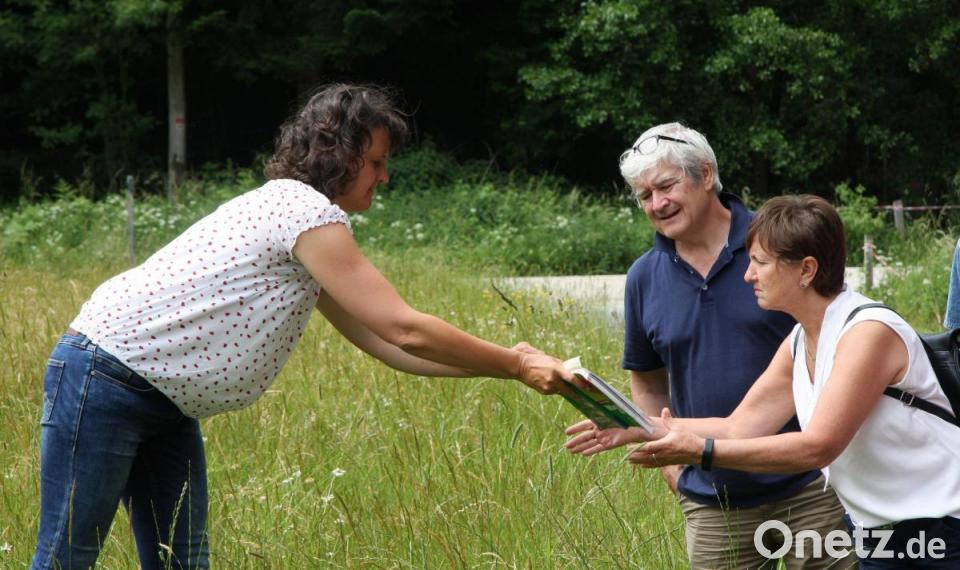 Weiter geht’s in Richtung Glasschleif, wo die Radfahrer und Wanderer Brotzeit machen oder aufbrechen, um den Steinwald zu erkunden. Die „Gaststube“ im Freien lässt Hermann links liegen. Nächstes Ziel ist die noch ungemähte Wiese, die ein wahres Eldorado für Pflanzenliebhaber zu sein scheint. Ob der „Zahnbürstl“ genannte Schlangenknöterich auch hilfreich sei, wisse sie jetzt nicht, bedauert Herrmann, nimmt den Rucksack runter und blättert in ihrem Kräuterbuch, in dem alles beschrieben ist. „Früher wurde er als Spinatersatz verwendet“, deutet sie nun auf die Blätter, die man aber aufgrund des hohen Oxalsäure- und Gerbstoffgehaltes eher in Maßen verzehren sollte. „Zudem enthalten die Wurzeln Stärke und Vitamin C“, erfahren die eifrigen Kräuterwanderer, die sich ihr angeschlossen haben und jetzt mehr über den hohen Schlangenknöterich wissen, als noch wenige Augenblicke zuvor. Nach und nach – immer wieder unterbrochen von einer Erklärpause, bei der auch mal eine Pflanze gepflückt und in der Hand zerrieben wird – neigt sich die Kräuterwanderung ihrem Ende entgegen. Die kleine Gebühr bezahlt man gerne, schließlich war der Ausflug ins Grüne nicht nur eine schöne Erfahrung, sondern auch sein Geld wert. Außerdem wurde der Speisezettel für daheim um wertvolle Ideen, die zudem nichts kosten, deutlich bereichert.