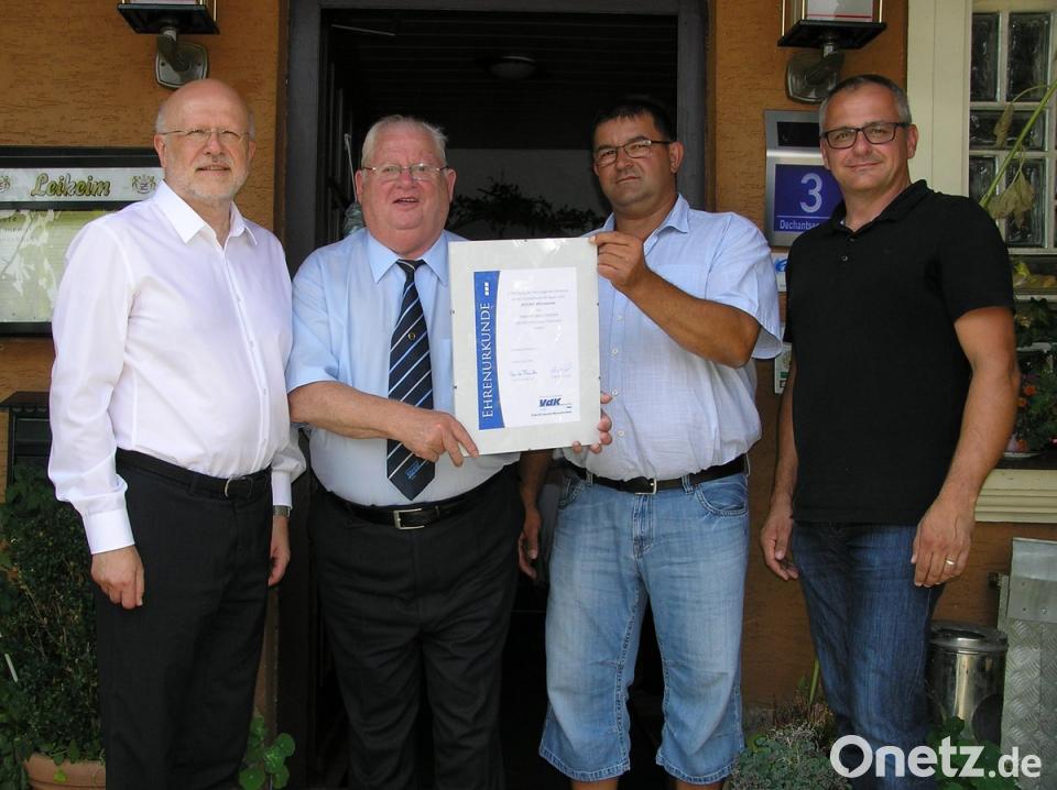 (öt) Alfons Wegmann wurde beim Sommer-Mitgliedertreffen des VdK-Ortsverbands Pullenreuth in der Hammerschänke in Dechantsees zum Ehrenvorsitzenden ernannt. Thomas Hacker, sein Nachfolger im Amt des Vorsitzenden, überreichte Wegmann die Ehrenurkunde im Beisein von Pullenreuths Bürgermeister Hubert Kraus, dessen Stellvertreterin Gabi Hawranek und Neusorgs drittem Bürgermeister Karl Lenhard. Glückwünsche überbrachte auch VdK-Kreisgeschäftsführer Harald Gresik.