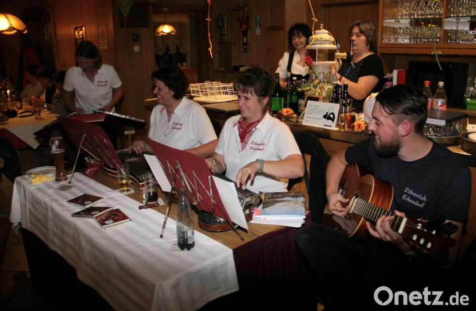 Weiter ging's mit einem Hackbrettsolo, das die musikalische Leiterin Veronika Hille einem Gast versprochen hatte. Vorsitzende Heidi Banzer und Anita Blohmann ließen kurz danach auch die Zithern erklingen. Begleitet wurde das Frauen-Trio von Erik Staufer an der Gitarre. Viele andere Stücke, bekannte heimatliche Klänge und weniger Bekanntes folgten danach. Das Saiten-Quartett gönnte sich kaum eine Pause. Die Kellnerinnen trugen die bestellten Getränke auf. Man lachte, aufmerksam horchte man zu. Entspannt wurden – wenn die Musik verstummte - die Unterhaltungen für einige Augenblicke fortgesetzt. Alles in Mundart, versteht sich. Ohne Zweifel aber ließ man es sich gut gehen beim Heimatabend inmitten des Naturparks, oben am Steinwaldrand. Die Saiten-Musiker freuten sich über kräftigen Applaus. Übrigens: In wenigen Monaten feiert der Erbendorfer Zitherclub sein 90-jähriges Bestehen.