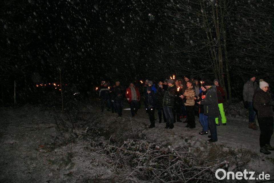 Wer gut zu Fuß war, stellte sein Auto ganz weit draußen vor dem Lichterwald ab. "Irrlichter" wiesen links und rechts der Straße, so es zur Rauhnacht geht. Eine gute halbe Stunde vor Beginn machte sich ein Fackelzug von Pullenreuth hinauf in den sagenumwobenen Tann. Die nicht enden wollende Prozession wurde zu einem weiteren Höhepunkt der diesjährigen Veranstaltung.