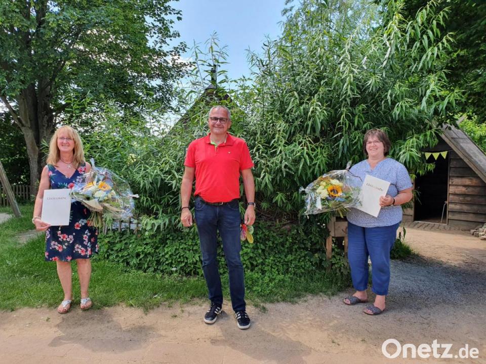 Kraus ehrte die beiden Damen mit einem Blumenstrauß und bedankte sich für ihr langjähriges Engagement und ihre Treue zum Kinderhaus Steinwaldzwerge. Heutzutage ist dies nicht mehr selbstverständlich. Auch hat sich in dieser langen Zeit das Berufsbild der Kinderpflegerin bzw. der Erzieherin komplett gewandelt. In unzähligen Fortbildungen muss das pädagogische Wissen stets erweitert werden und auch Anforderungen der Schule aber auch der Regierung steigen stetig, so hat auch die Büroarbeit in den vergangenen Jahren sehr zugenommen.